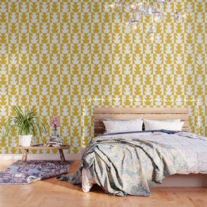 Art Deco Jagged Edge Pattern Mustard Yellow Wallpaper By Tonymagner