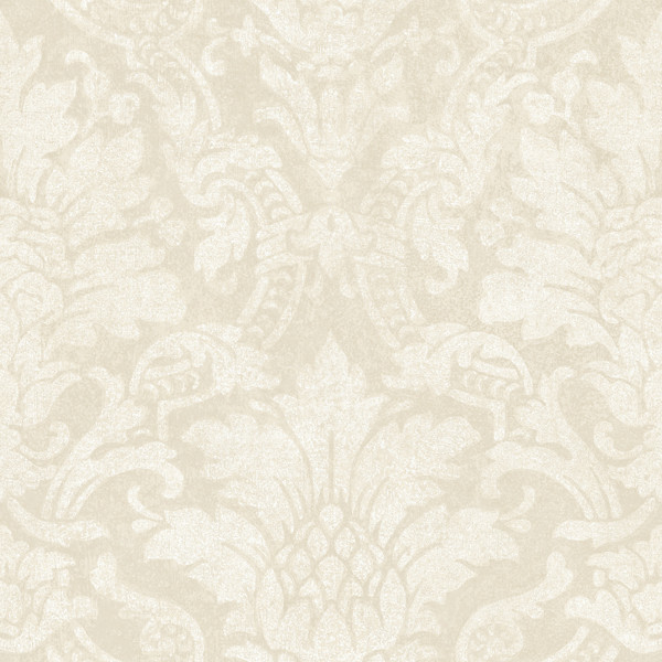 Beige Distressed Damask Wallpaper