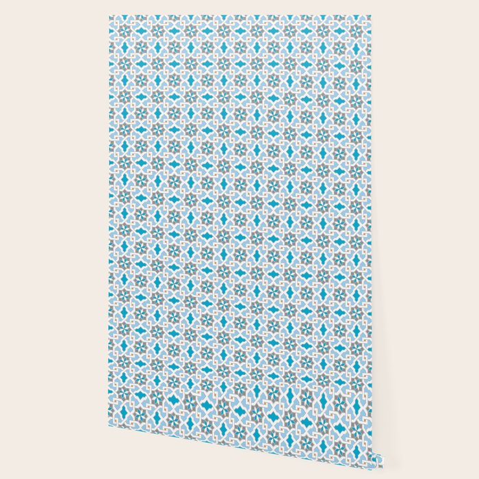 Oriental Design Geometric Pattern Pt 1 Seamless Design Blue Grey White Wallpaper