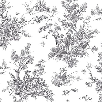 Manhattan Comfort Nwab42413 Westport Series Vinyl Irish Countryside Toile Design Large Wallpaper Roll 20 5 W X 32 7 L Black White