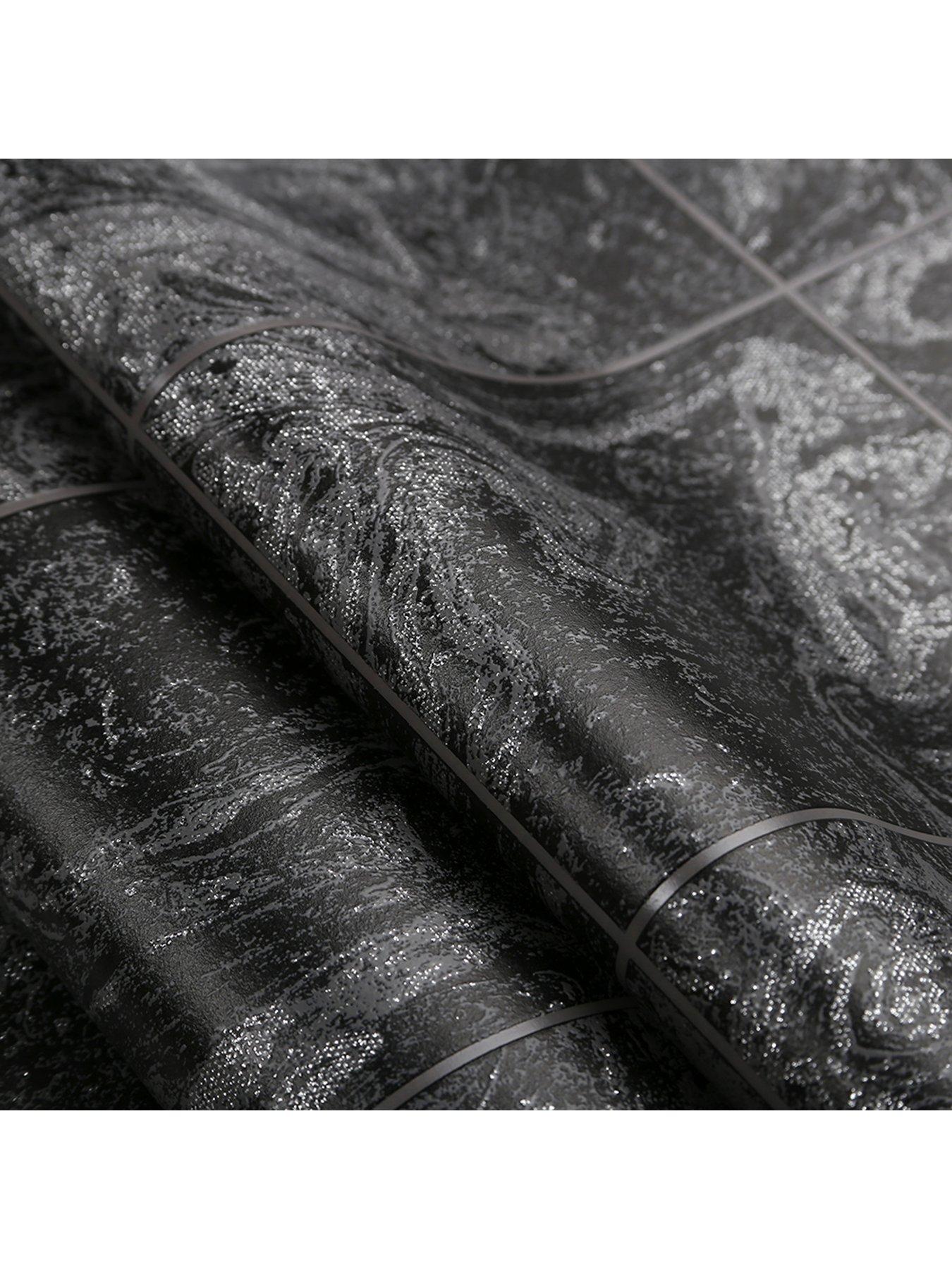 Glitter Marble Tile Black Wallpaper