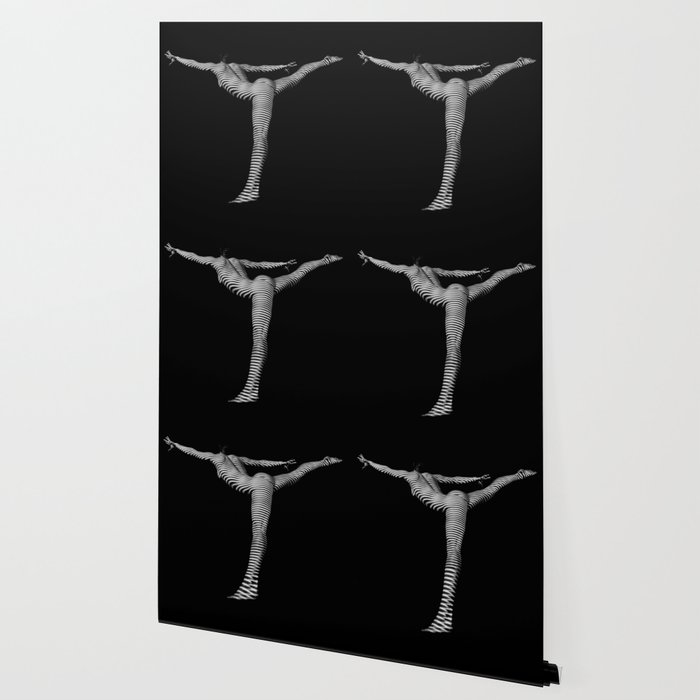 3729s Dew Black And White Fine Art Nude Yoga Zebra Stripe Feminine Grace Power Balance Wallpaper