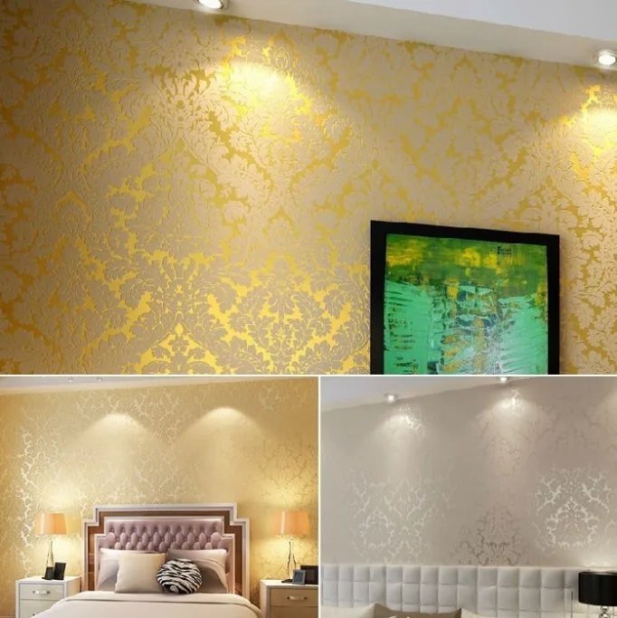 Us 36 0 New European Vintage Luxury Damask Wall Paper Embossed Textured Wallpaper Rolls Home Decoration Gold Silver White In Wallpapers From Home