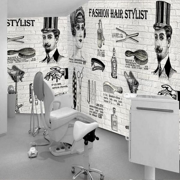 Custom 3d Mural 3d Stereo Retro Black And White Brick Style Wallpaper Mural Barber Shop Restaurant Fashionable Store Mural Hi Def Wallpaper Free Hi